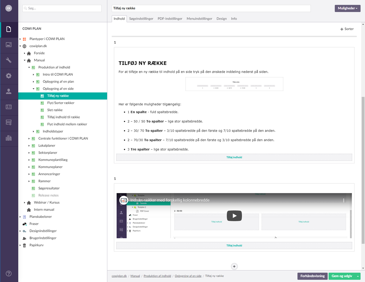 - Som bruger kan du organisere opsætning af de enkelte sider
